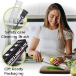 One of the best things about our utensil is that it’s slim, making it easier to store in your kitchen shelves and cabinets! The handle is built with a convenient hole on one end, so you can hang it up on your walls. The tool also comes with a safety blade cover to prevent any accidents or cuts when you’re not using it.