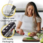 One of the best things about our utensil is that it’s slim, making it easier to store in your kitchen shelves and cabinets! The handle is built with a convenient hole on one end, so you can hang it up on your walls. The tool also comes with a safety blade cover to prevent any accidents or cuts when you’re not using it.