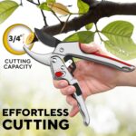 - ANVIL RATCHET PRUNERS- Robust Construction. These pruners for gardening can effortlessly cut up to 3/4″ diameter tree branches, while the heavy duty body and handles ensure outstanding durability for both professional or home gardeners seeking reliable tools.