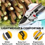 - RATCHETING PRUNING SHEARS FOR GARDENING HEAVY DUTY – Ultra-Sharp & Durable blade. High carbon SK-5 steel with Ultra-fine Polishing Technology & Special Corrosion-Resistant Coating ensure clean, precise cuts for your flower gardens, roses, and plants, making it a perfect choice for gardening enthusiasts.